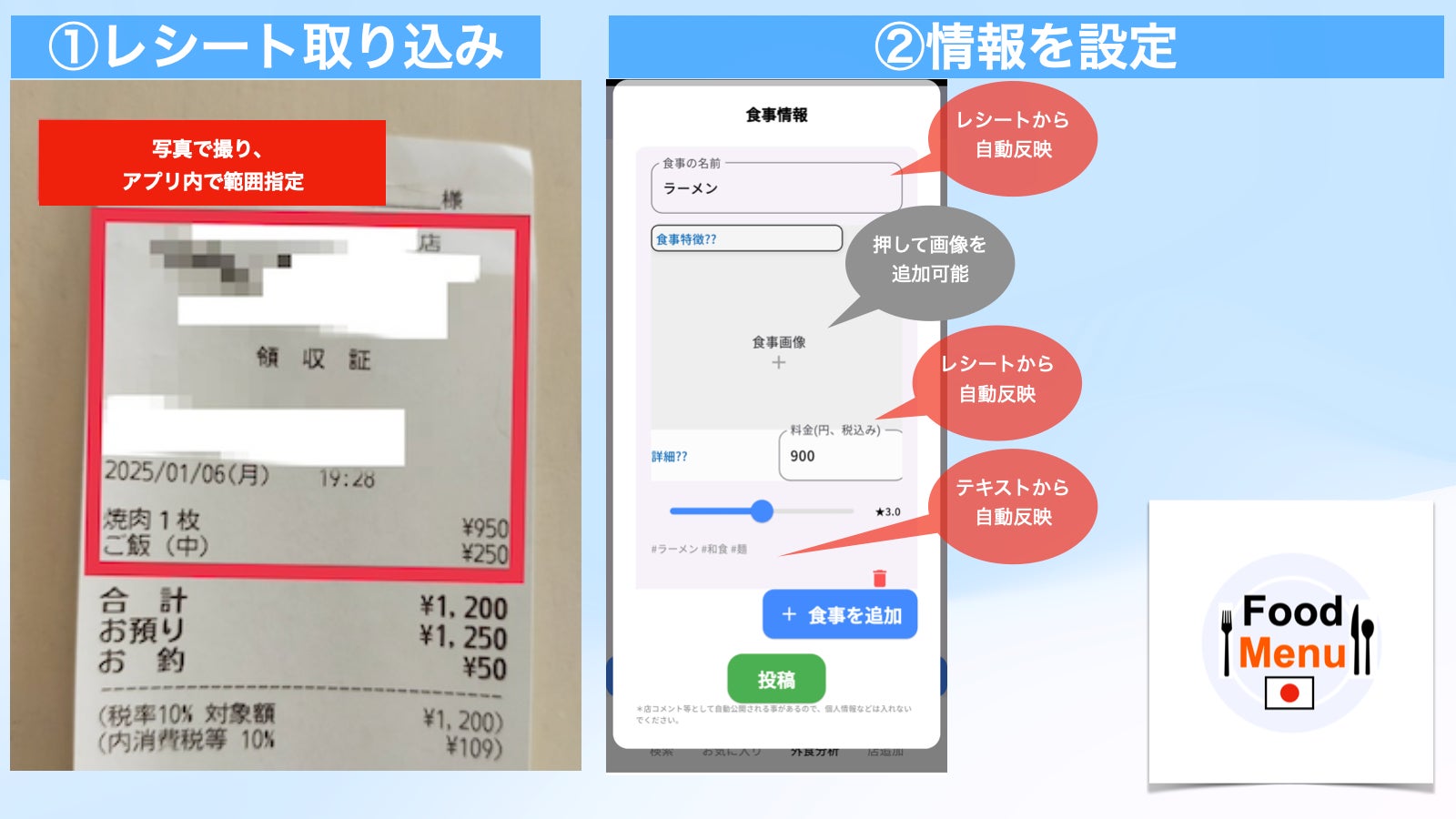 ~ レシート1枚で、外食情報を自動整理・SNS投稿&支出分析も簡単に ~