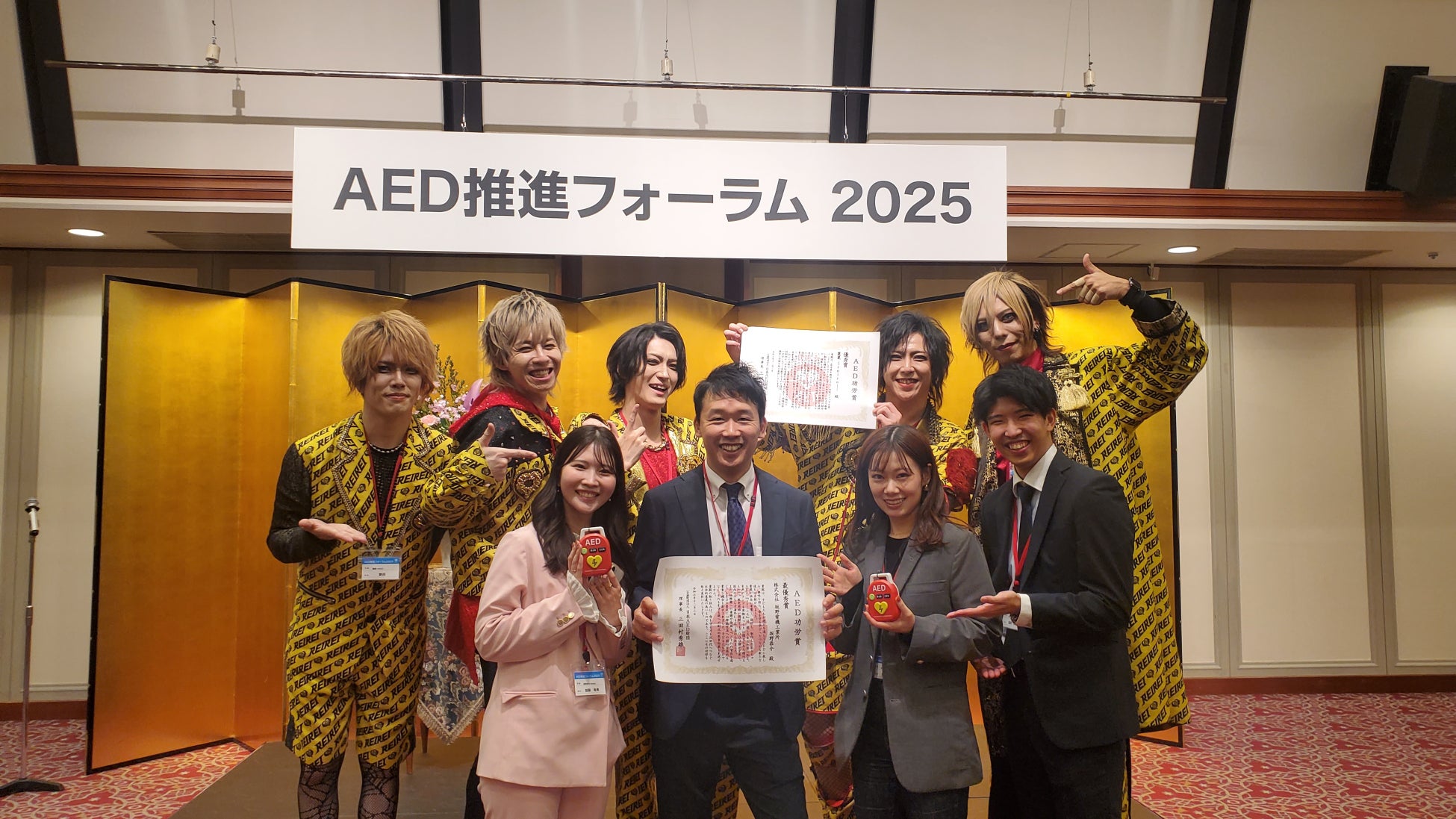 「AED推進フォーラム」は、厚生労働省・総務省消防庁・文部科学省・日本医師会・NHK・日本循環器学会など、20を超える省庁・学会・メディアが後援する、日本最大級のAEDイベント。その公式プログラムの中で行われる「AED功労賞」は、年に一度、AED普及に寄与した取り組みを全国から選出するものです。最優秀賞は、その年にAED普及へ最も大きく貢献した一つの取り組みに授与されるもので、全国で唯一の表彰となります。