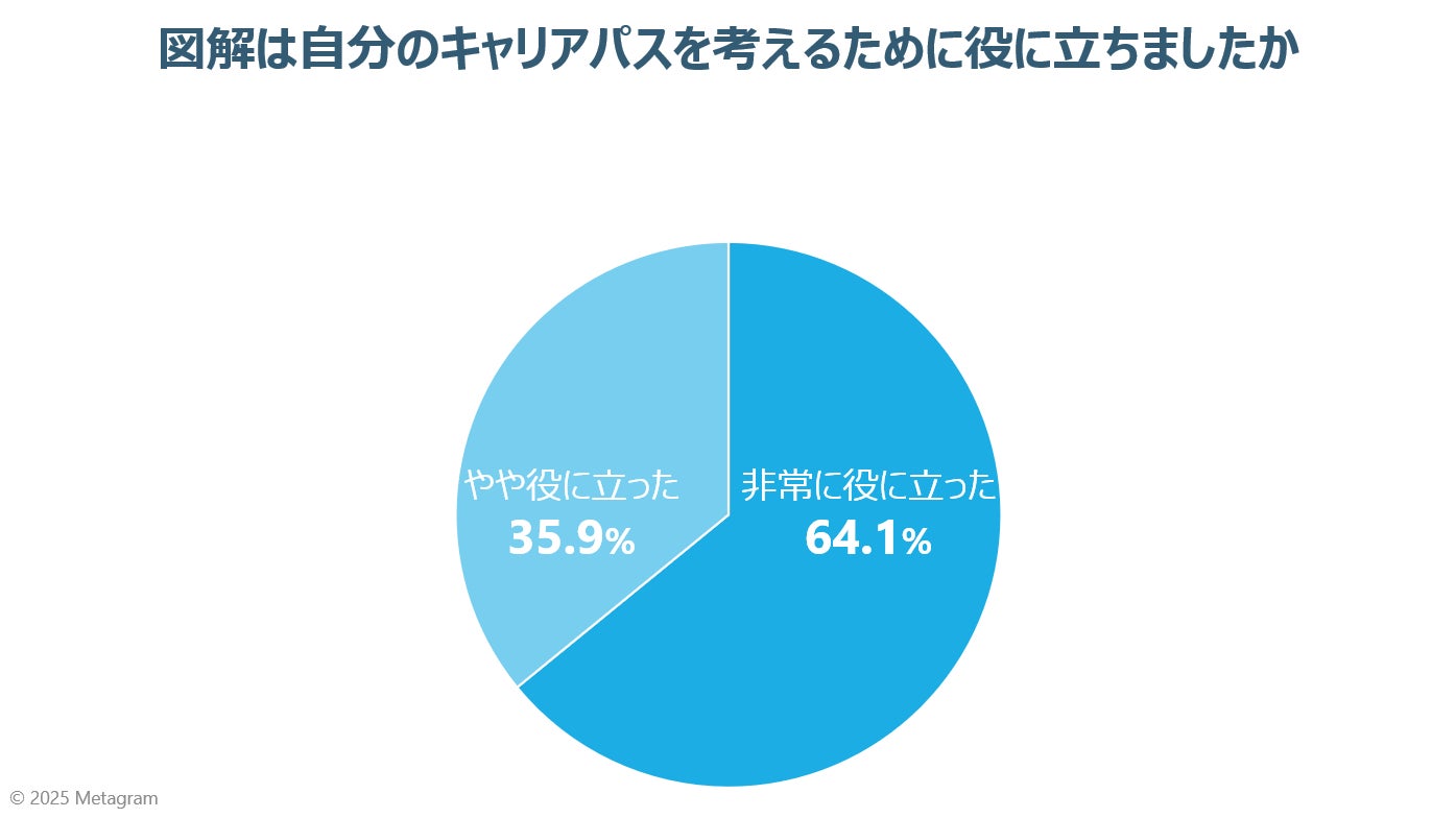「非常に役に立った」が64.1%、「やや役に立った」が35.9%でした。すべての回答者が「役に立つ」と回答しました。