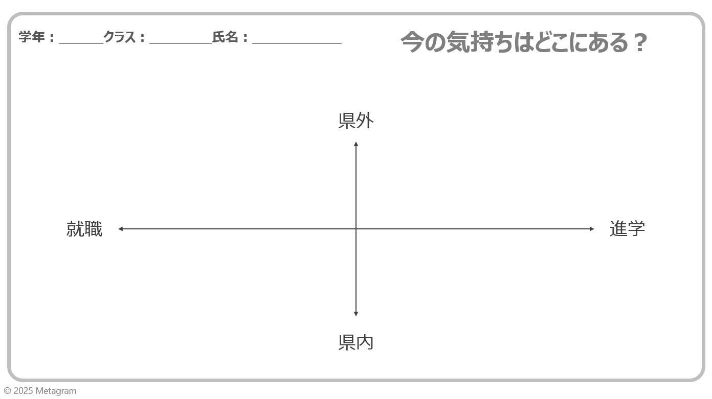 株式会社Metagramは今回の講話をベースとした「キャリアパス図解ワークショップ」を全国の専門高校(工業高校、商業高校、農業高校など)に展開する計画です。専門高校の生徒ならではの進路に関する課題を、生徒ともに図解することで解決していくプログラムです。進路に悩む以前に、「進路に選択肢があることを知らない」生徒に対し、キャリアパス図解を通して気づきを与える活動を推進していきます。