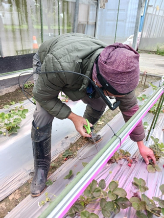 南澳の宜蘭大學保有温室において、実際の農業従事者が遠隔営農支援システムを活用しながら、“栽培経験のないイチゴおよび三星ネギ(宜蘭特産)” の栽培に取り組みました。