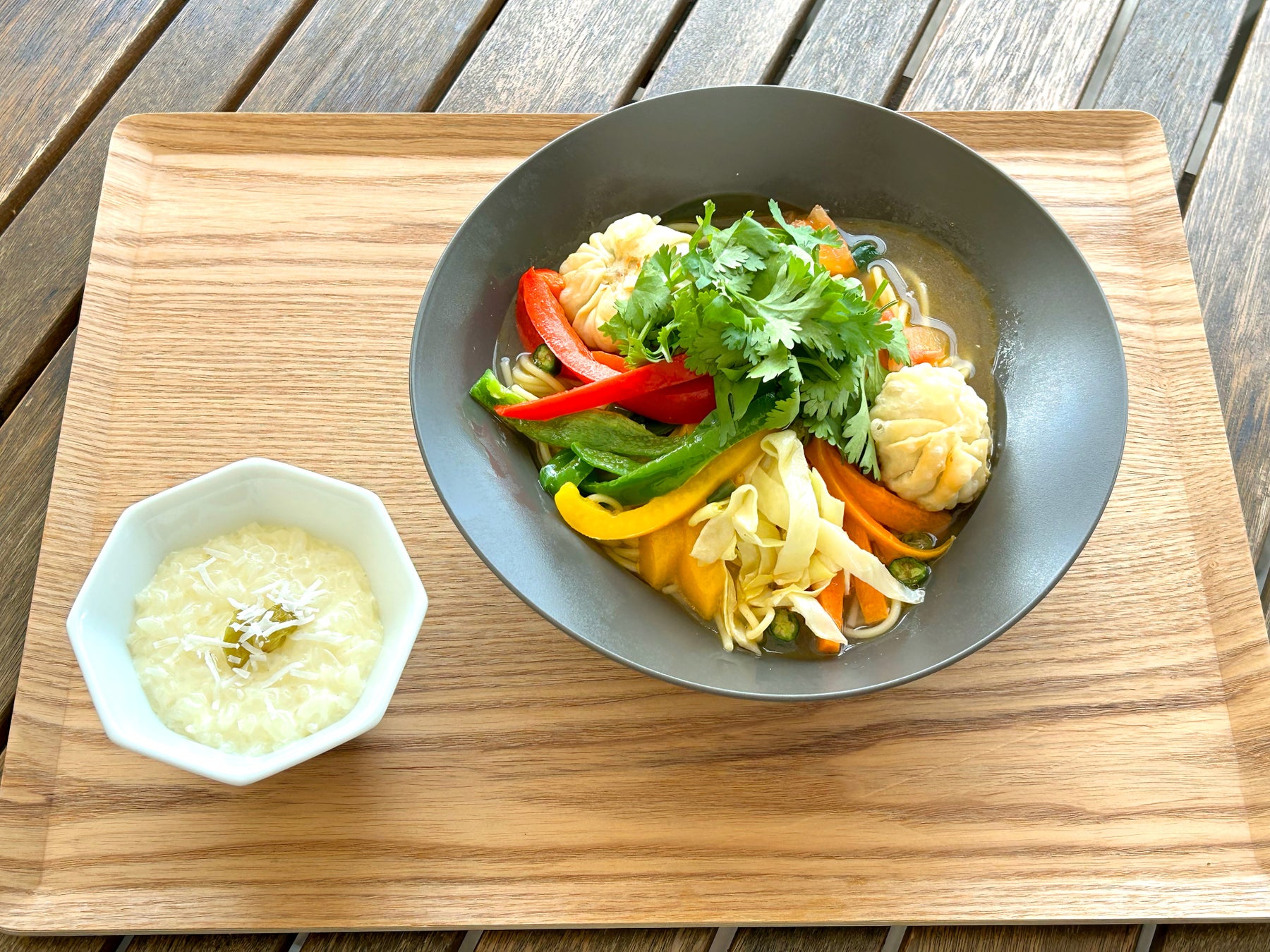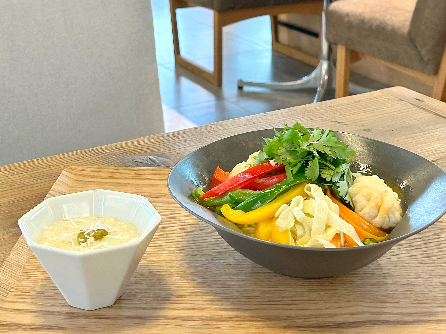 ネパールの伝統的な料理トゥクパとモモをコテカフェ風にアレンジ。