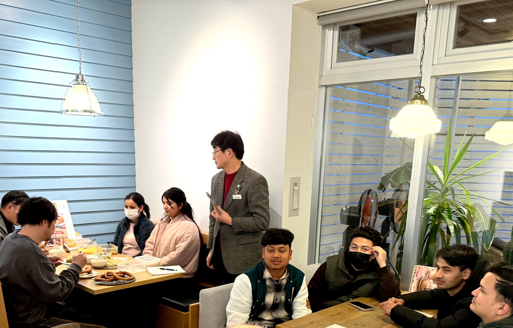 1年生の「ビジネスプラン発表会」で選ばれた優秀なプランを、2年生が地域連携の拠点であるトミオヴィレッジのコテカフェで実践するという新たな試みが誕生。 ネパール人 留学生6名が今回のプロジェクトを通して“実践”から学ぶリアルな経営を体験しています。