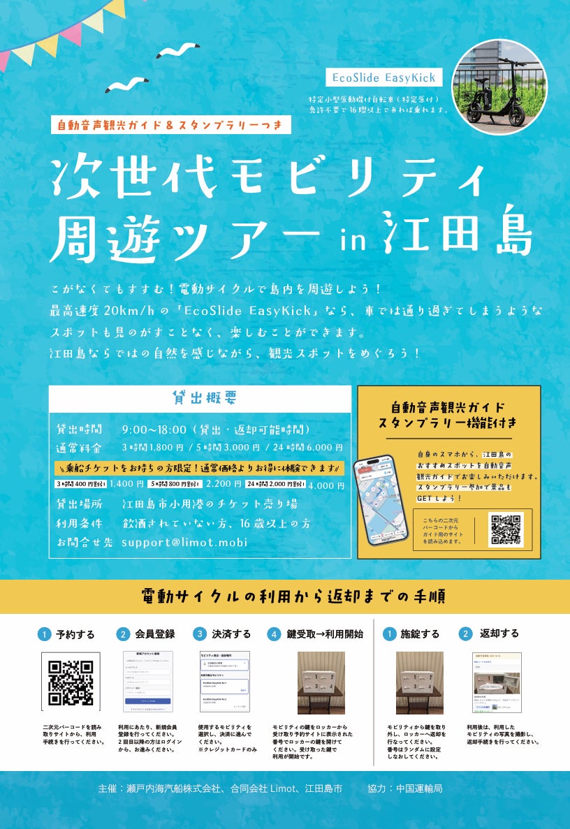 合同会社Limot、瀬戸内海汽船株式会社、江田島市 江田島市で自動音声観光ガイド付きモビリティレンタルを開始