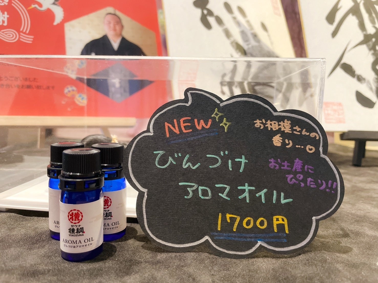 サウナ横綱が独自開発した「びんづけ油」のアロマを使った、アロマロウリュ。びんづけ油は、お相撲さんが髷を結う時に床山さんが使う油。