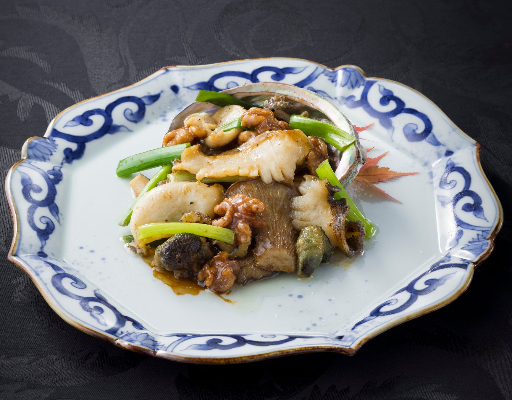 活け鮑とあわび茸の炒め物 8,250円(税込)