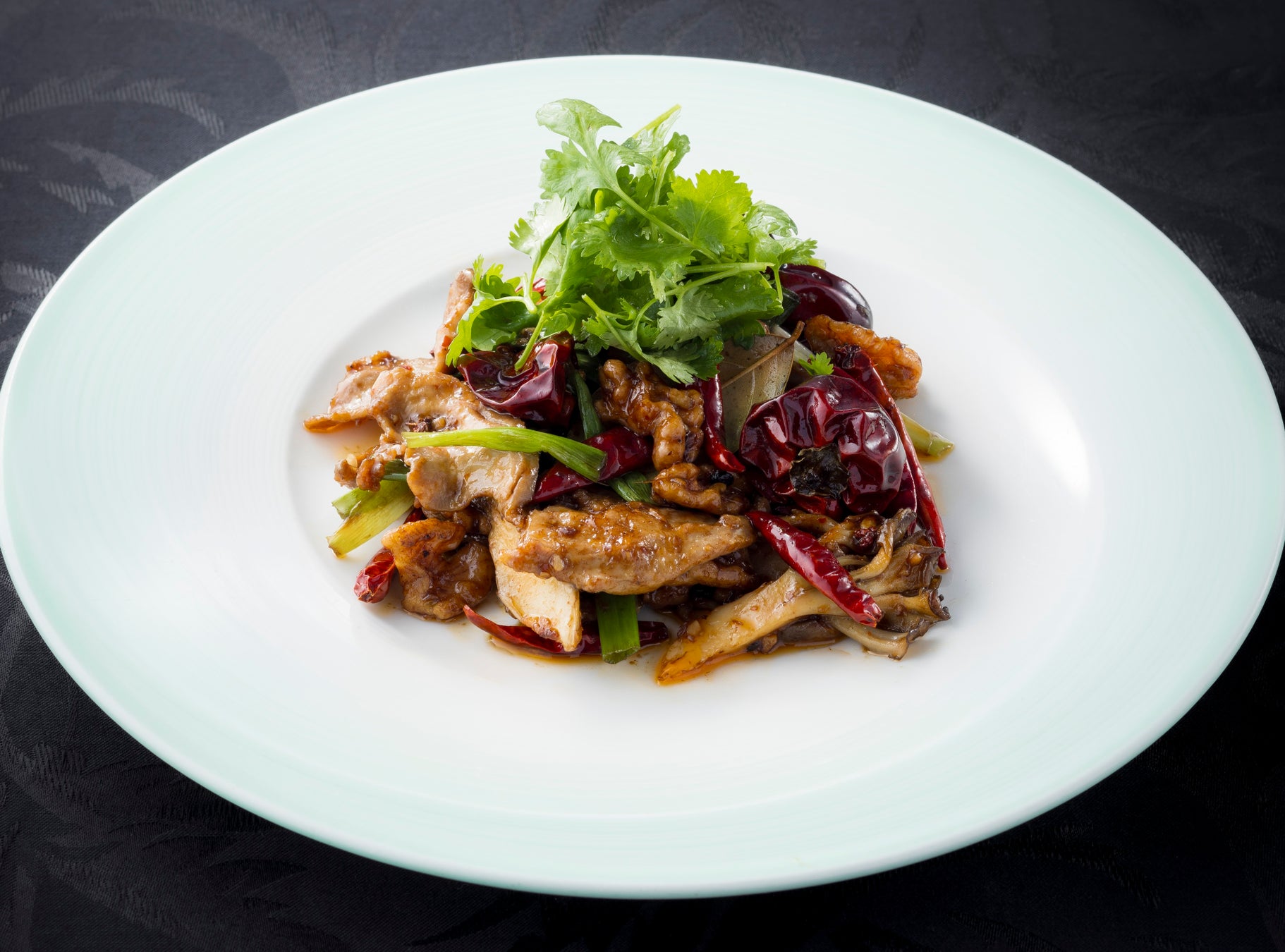 鮑の鮮度をそのままに、あわび茸と共に炒めた数量限定の一品です。あわび茸は、強い香りと、あわびに似たコリコリとした食感をもつため名づけられました。食感が似た、二種類の味わいを楽しめる一品です。塩味をミックスした、オリジナルのオイスターソースが、素材の味わいを引き立てます。