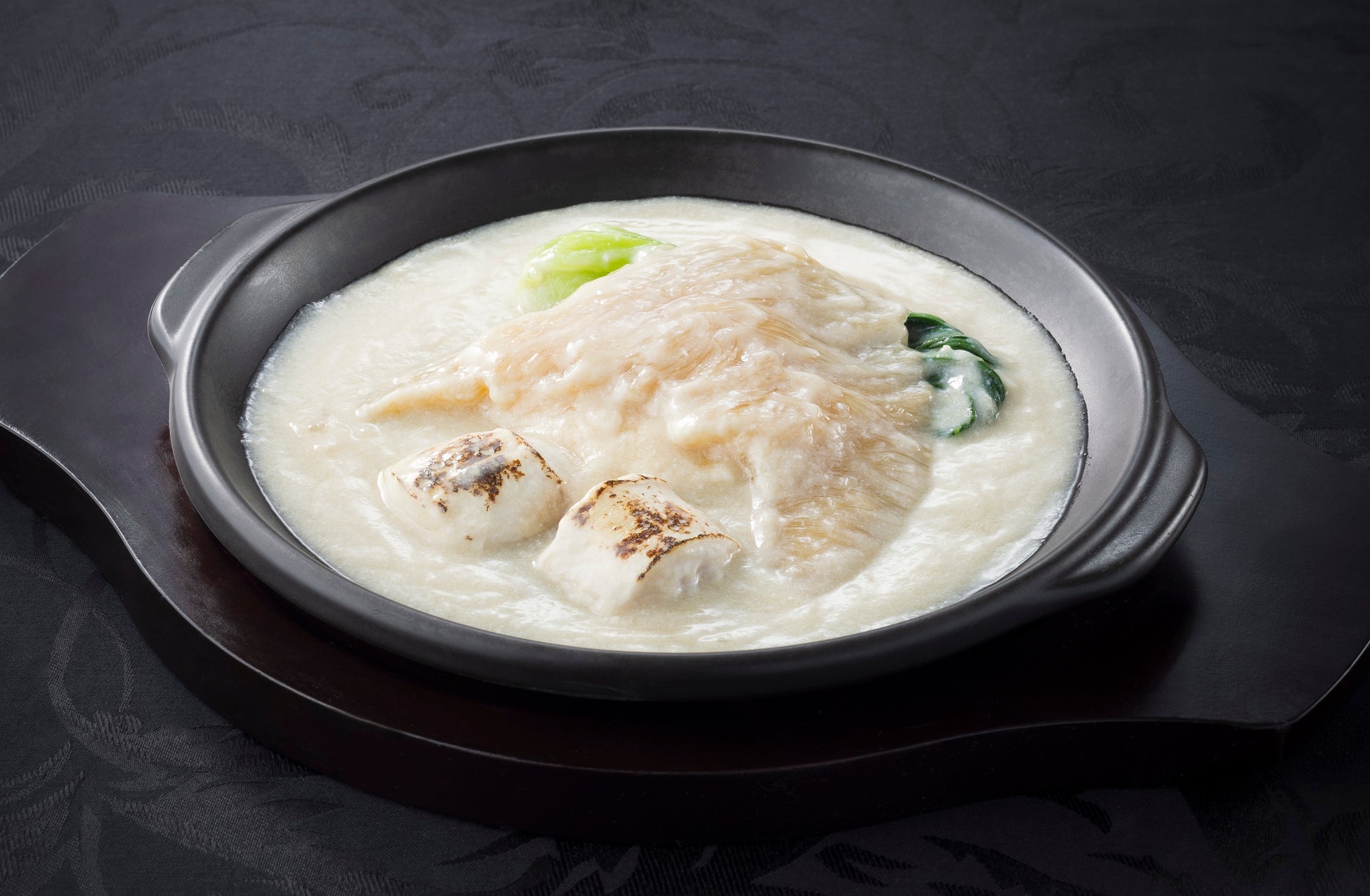 ふぐの白子とともに煮込んだふかのひれに、焼き白子をのせました。白子のペーストと合わせた極上のスープは、まろやかで濃厚な味わいが存分にお楽しみいただけます。また、スープにご飯を加えたリゾットもご一緒に提供いたしますので、余すことなく白子のスープを味わうことができます。