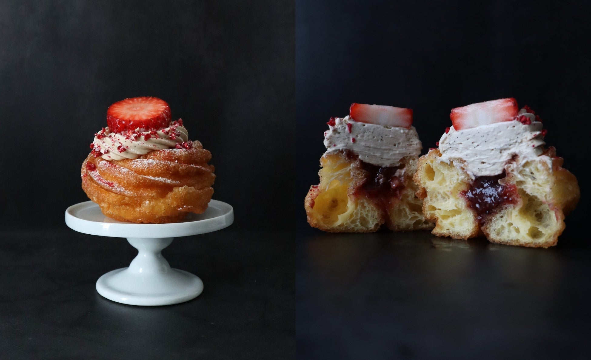 バニラをたっぷり使ったクリームに、甘酸っぱいイチゴのコンフィチュールを忍ばせて