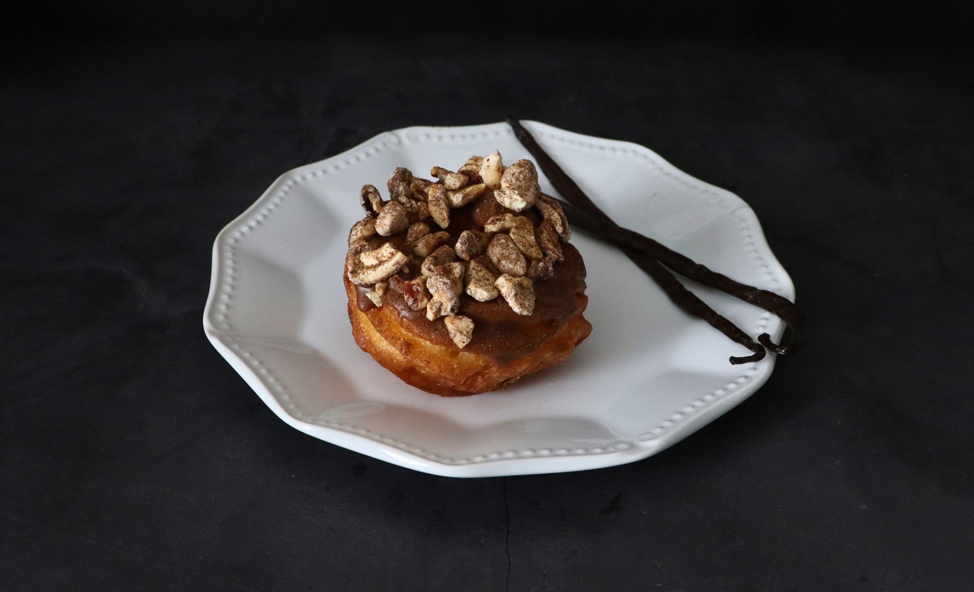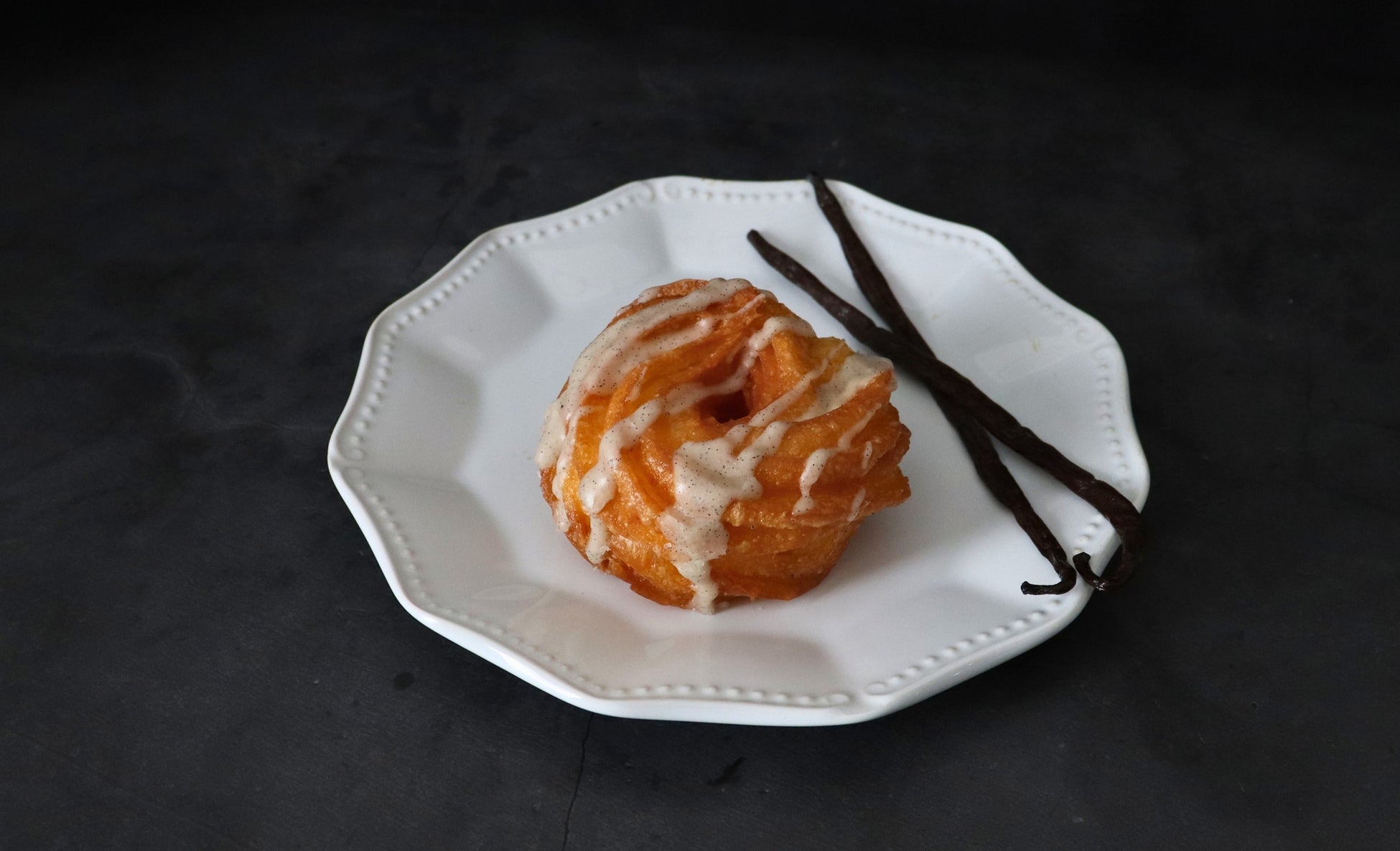 バニラの香りを閉じ込めた自家製バニララムグレーズをまとわせたフレンチクルーラー