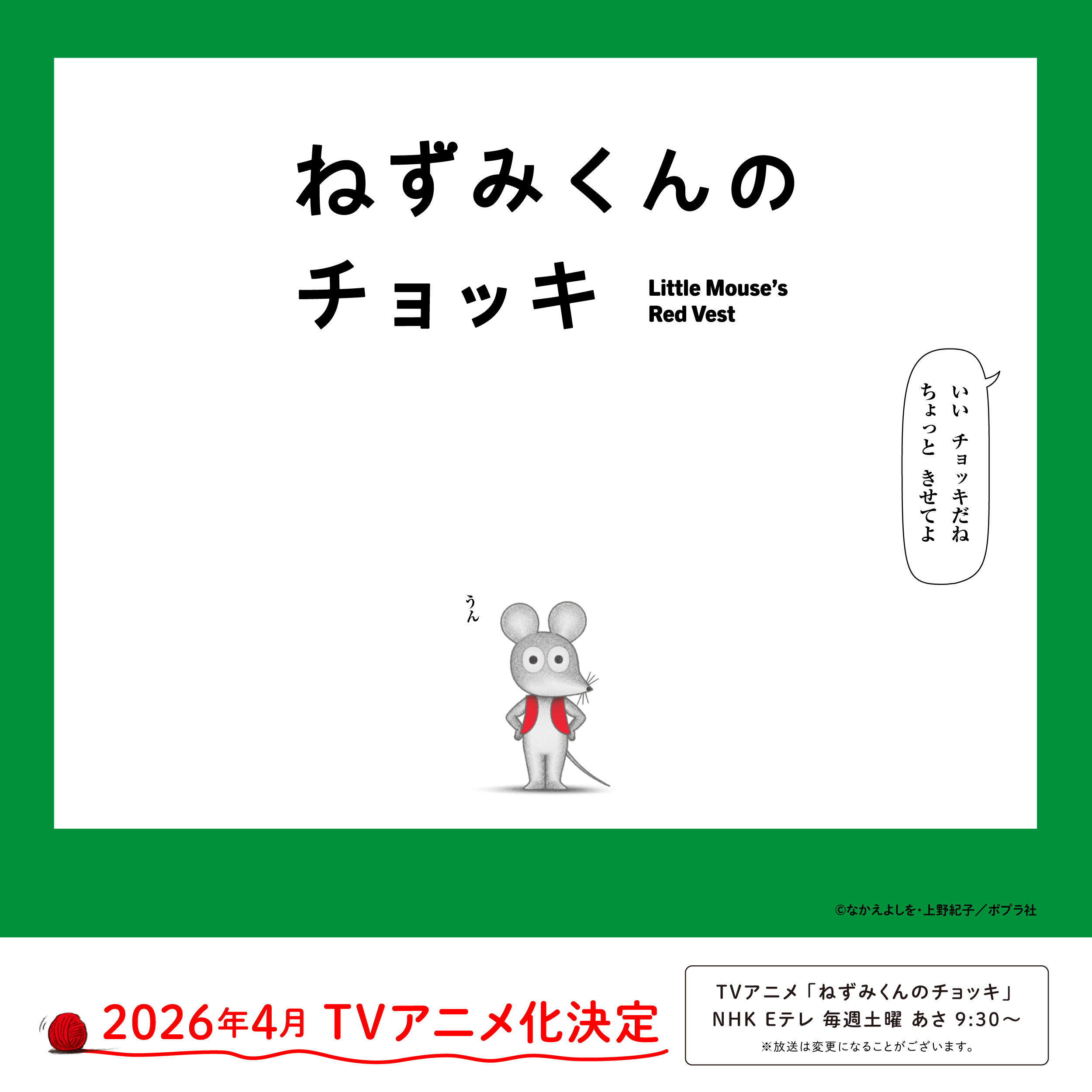 TVアニメ『ねずみくんのチョッキ』4月4日(土)より毎週土曜あさ9時30分、NHK Eテレにて放送予定!