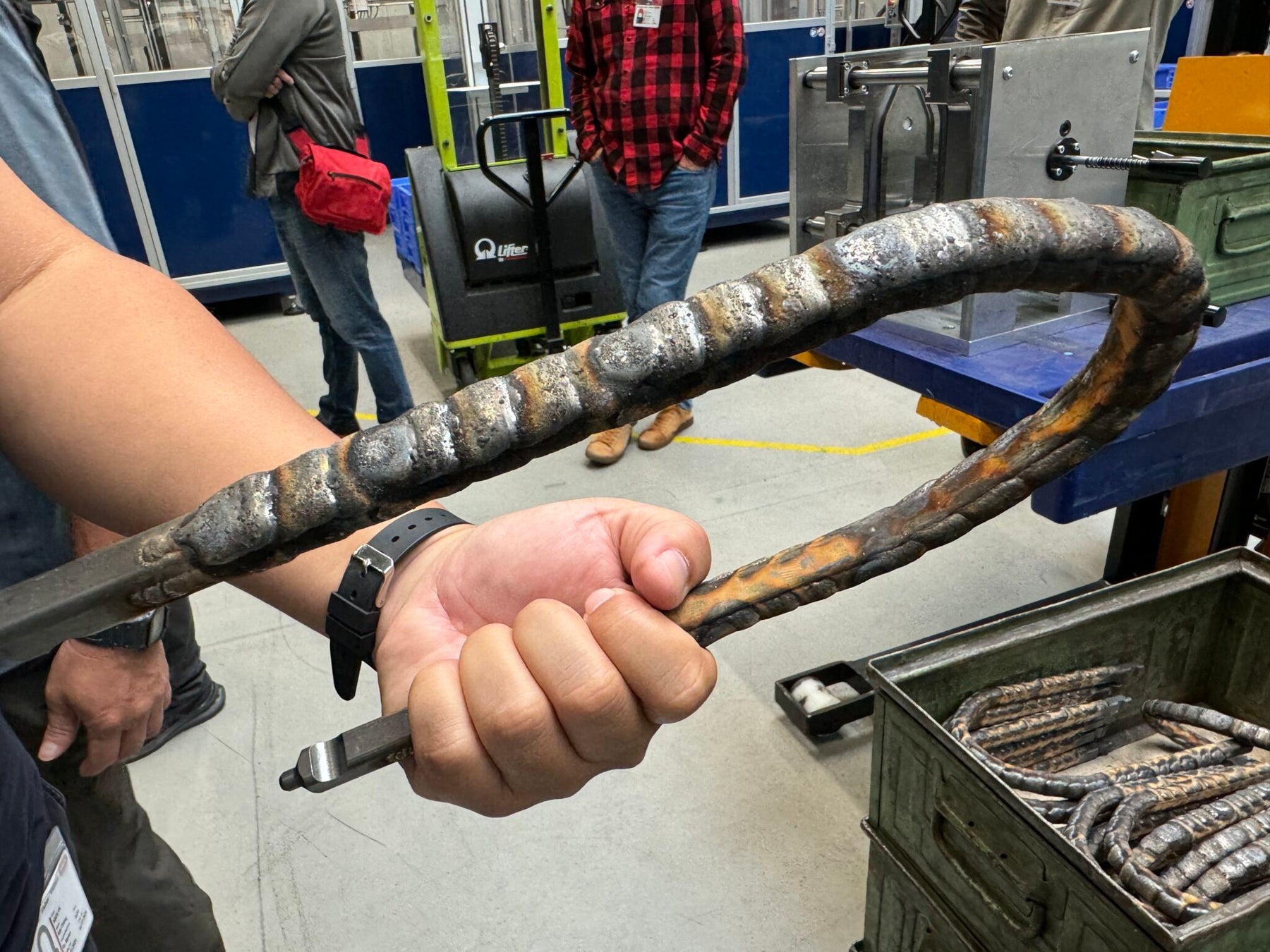 メインのシャックルはABUS独自配合の鋼鉄に、タングステンカーバイド合金を溶接して強化されています。製造過程のシャックルですが、いかにも頑丈そうな見た目になっています。