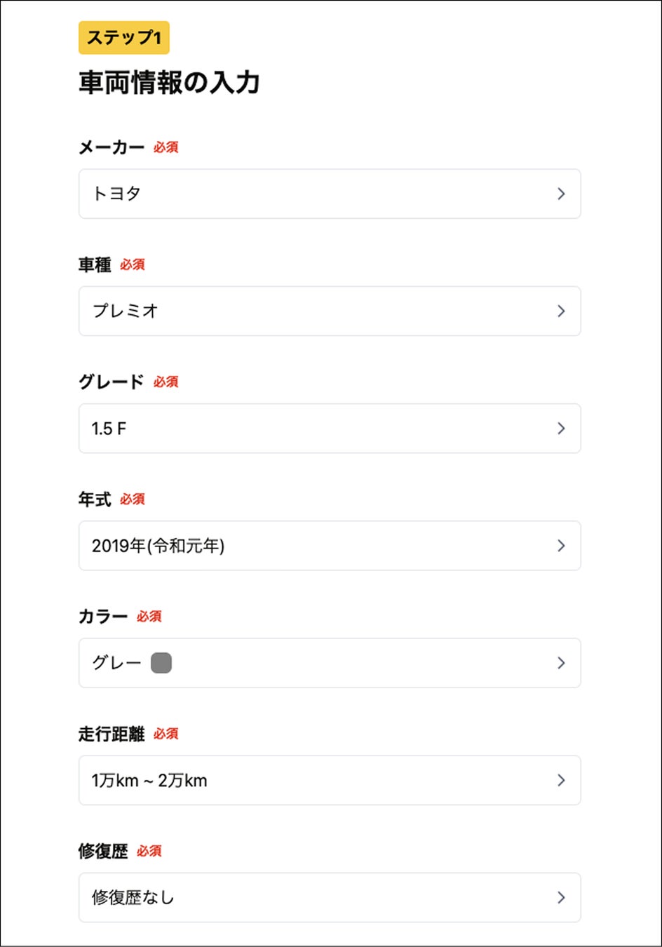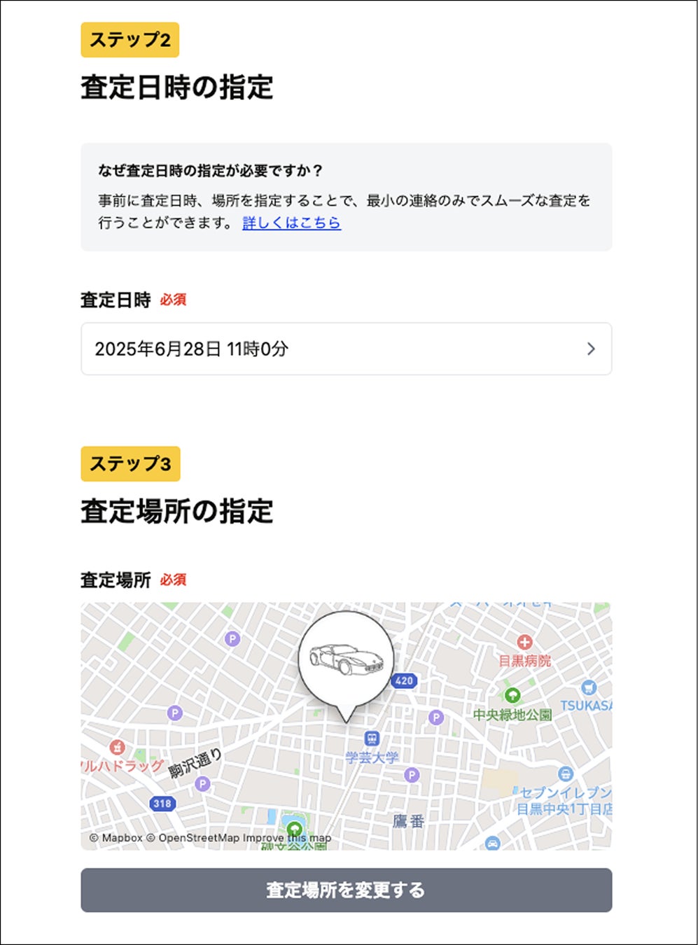 Web版「ここ来て!査定」は、アプリと同様の流れでスマートフォン・PCのブラウザから査定の申し込みができます。
