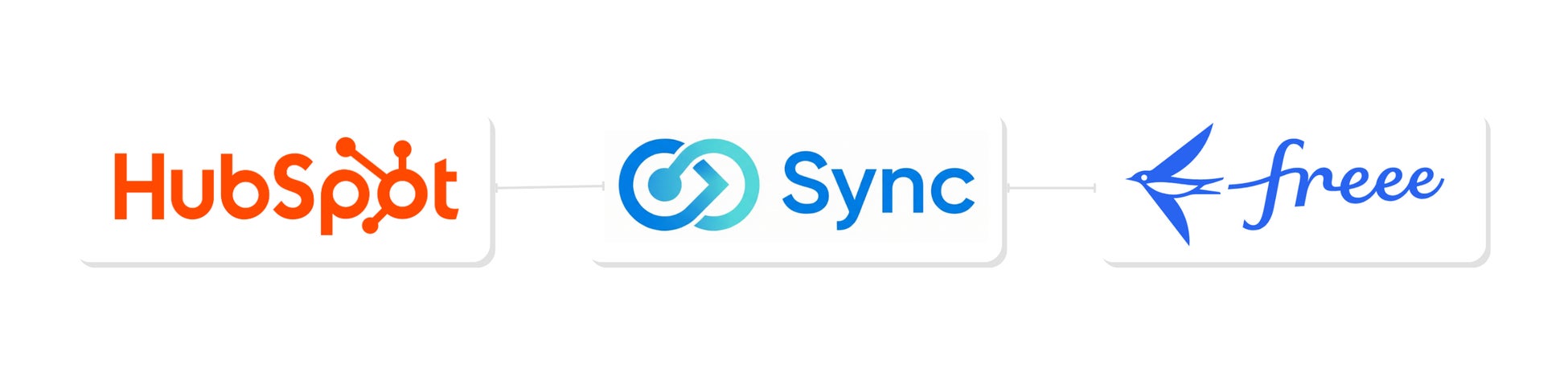 「Sync for freee」は、HubSpot CRMとfreee会計/freee請求書をAPI連携し、営業から経理までの一連の業務フローを自動化するクラウドサービスです。HubSpotの画面上からワンクリックで操作でき、システム間の移動なく業務を完結できます。