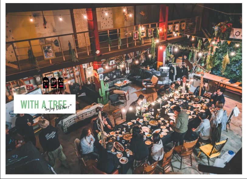 Squadは「やさしい社会をつくる」ために「やりたいことだけを徹底している集団です。本拠地は伊豆下田の巨大倉庫・WITH A TREE(ウィズアツリー)。廃棄物だけを使って、居心地の良い空間を作っています。