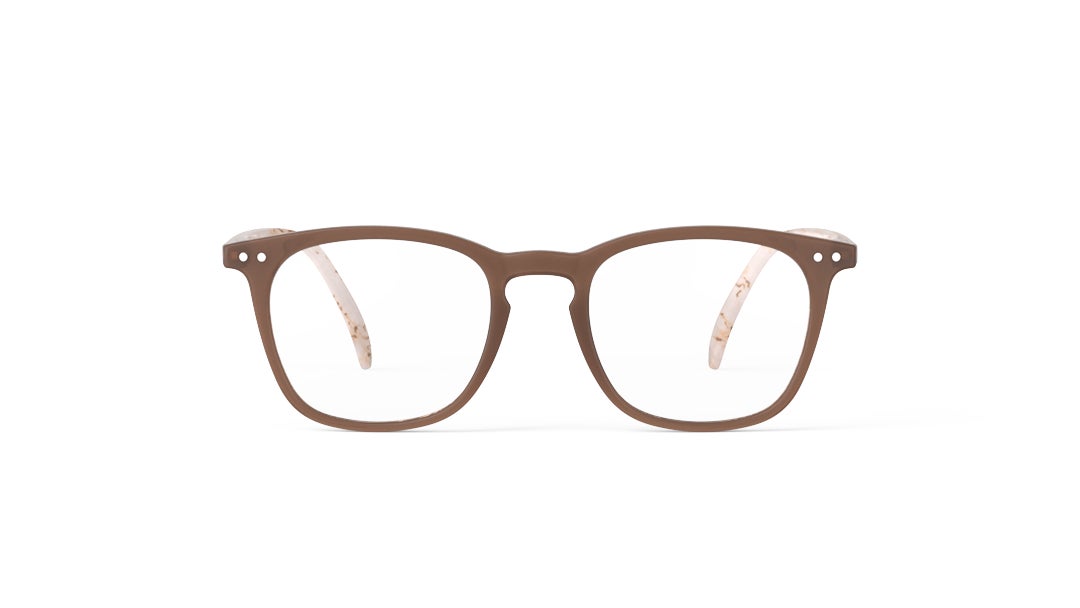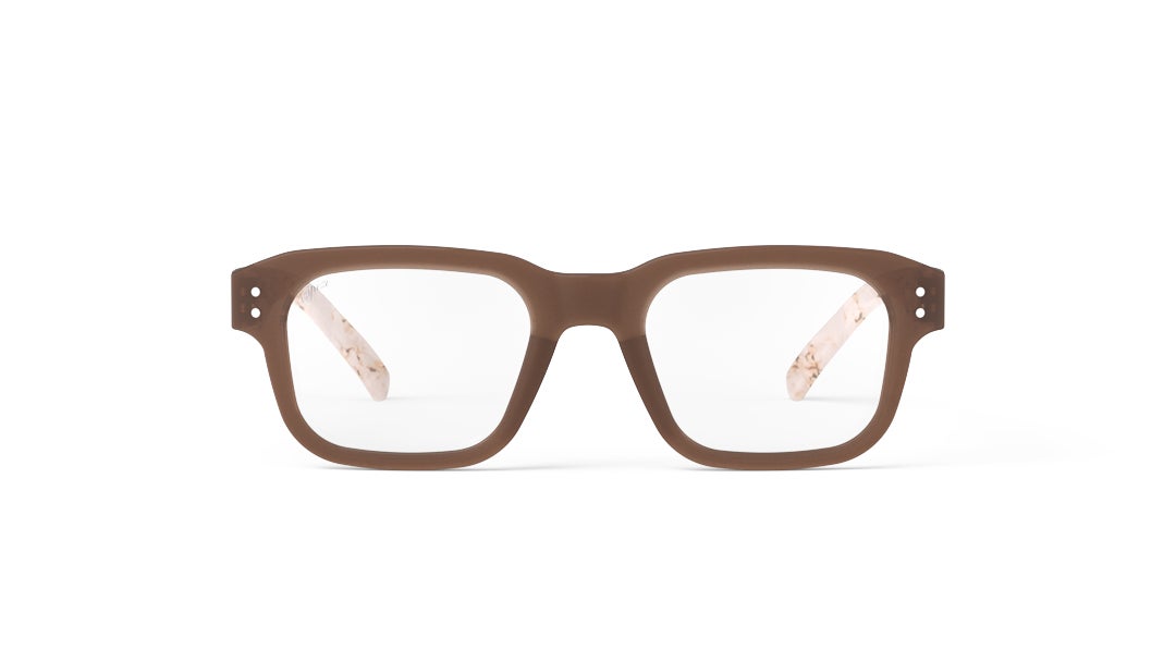 フロントには美しい繊細なブラウンを配し、テンプルにはマーブル模様をあしらうことで、