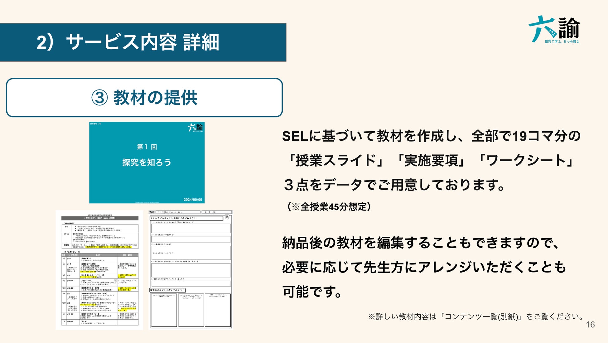 教材提供(授業スライド・指導要綱・ワークシート/20〜55コマ分)