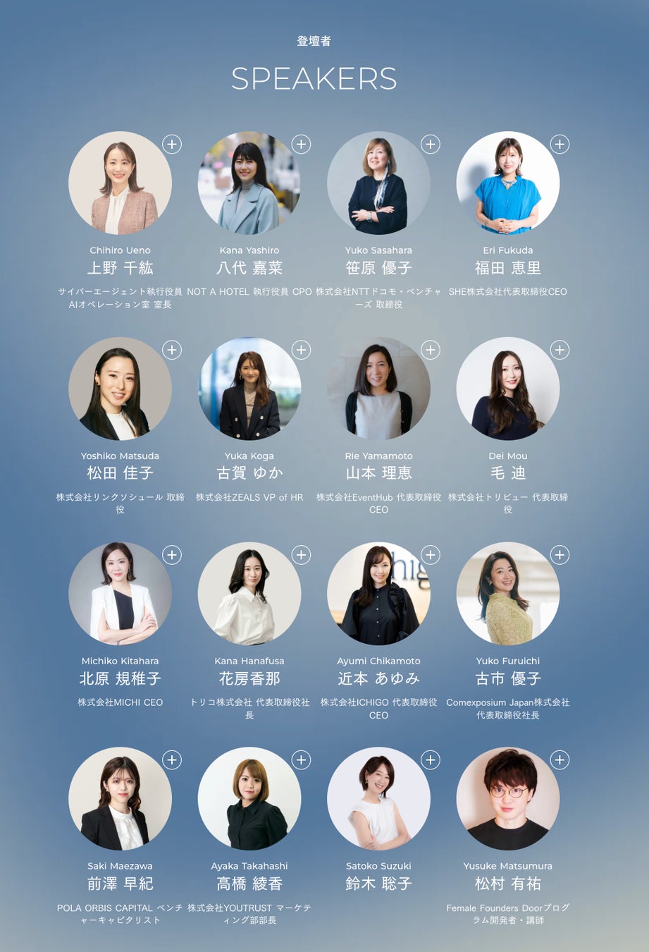 2025年1月から始動している1期生のみならず、2期生以降も公募によってプログラムの提供を継続していく所存です。なお、2期生の募集に関しては、「Female Founders Conference 2025」にて募集を開始し、2025年の夏頃のキックオフイベントの開催を予定しております。参加希望の方はお問い合わせフォームからお気軽にご連絡ください。