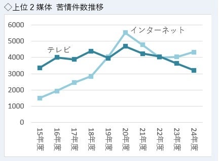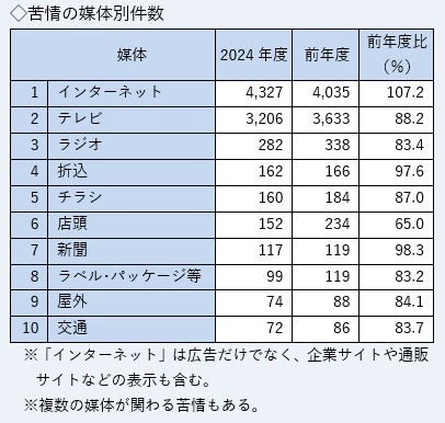 苦情 媒体別:インターネット上の不快な広告への苦情増