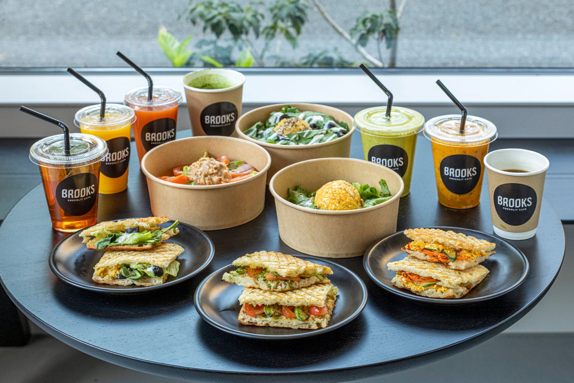 また、会場の1階に位置する「BROOKS GREENLIT CAFE」は、株式会社 大泉工場が運営する100%植物由来の食材を使用したメニューを提供するカフェとなっており、ペット同伴でご飲食いただくことも可能です。