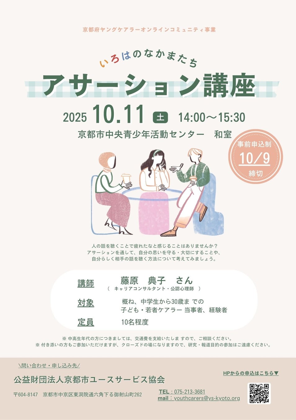 連絡先 :mail:youthcarers@ys-kyoto.org /tel:075-213-3681