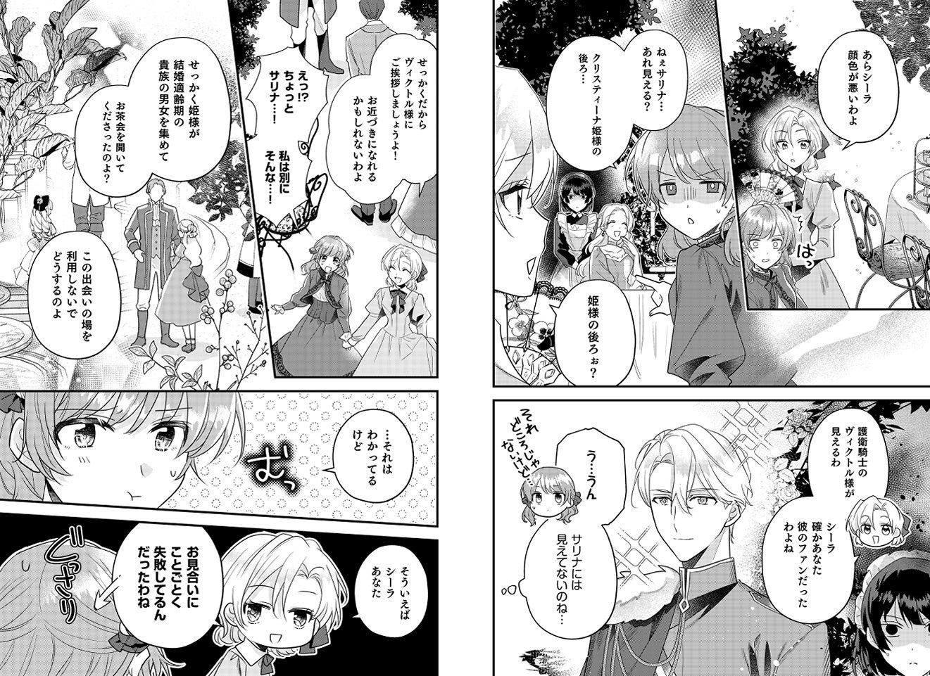 貴族令嬢のシーラはクリスティーナ姫主催のお茶会で彼女を睨みつける侍女の幽霊が見えるようになる。