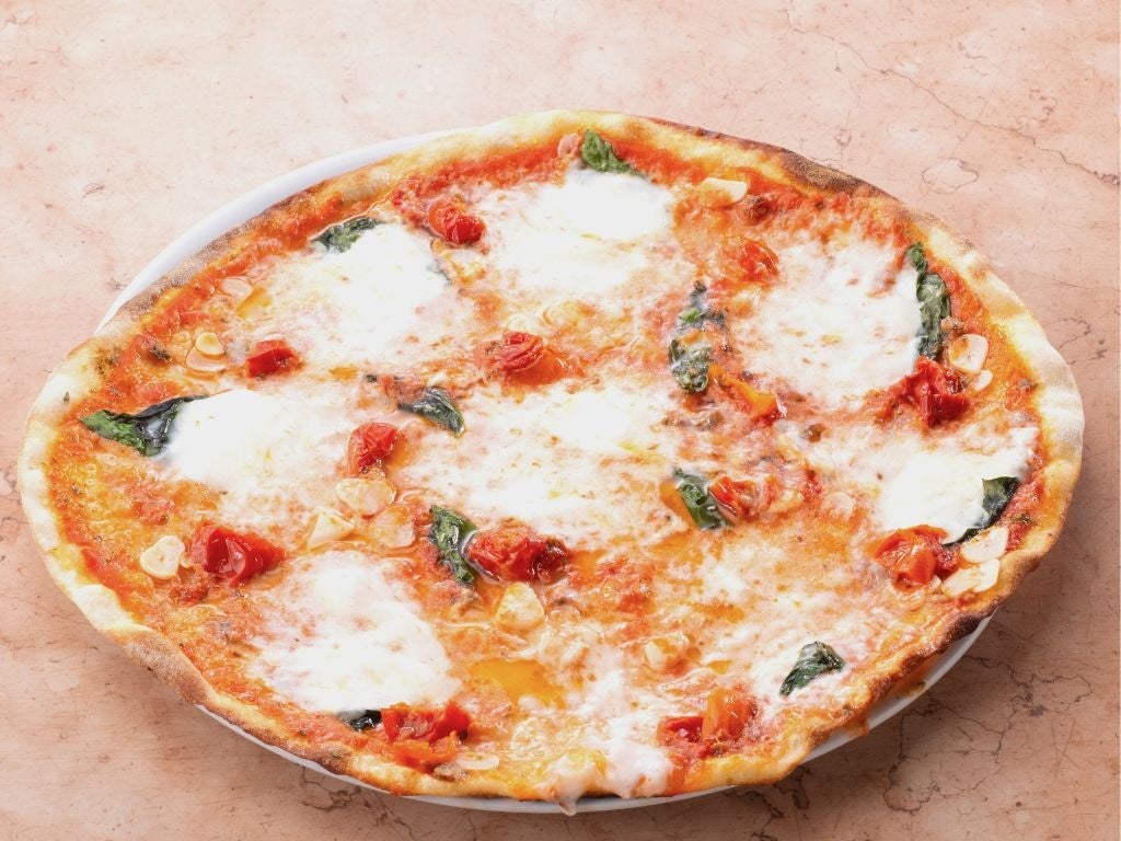 薄くてパリパリとした食感が特徴のローマ風ピッツァ。香り高い小麦粉とクリーミーなモッツァレラを使用し、シンプルながら奥深い味わいを楽しめます。