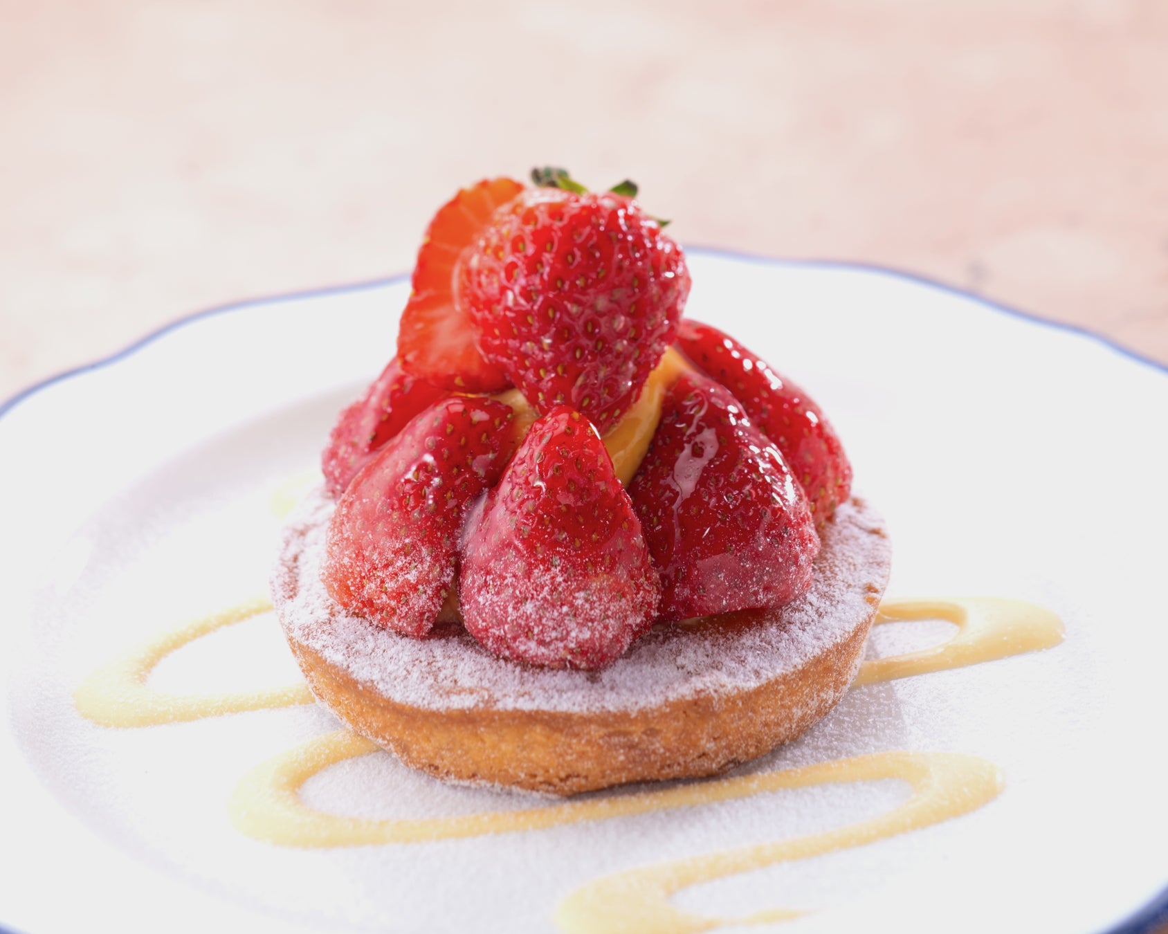 旬の果物を贅沢に使い、サクッと焼き上げたタルト生地に合わせました。素材本来の甘さと酸味を活かした、季節ごとの味わいが楽しめる一品です。