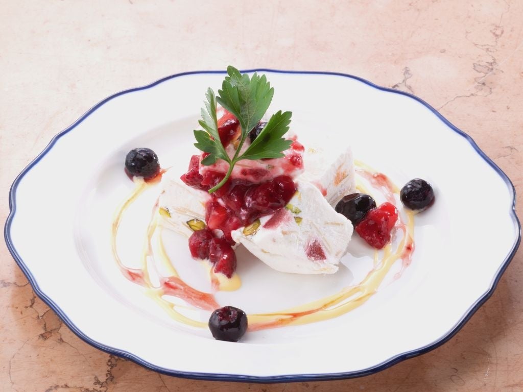 リコッタチーズにナッツやドライフルーツを加えて冷やし固めた、イタリアの伝統ドルチェ。程よい甘さと食感のコントラストがクセになります。