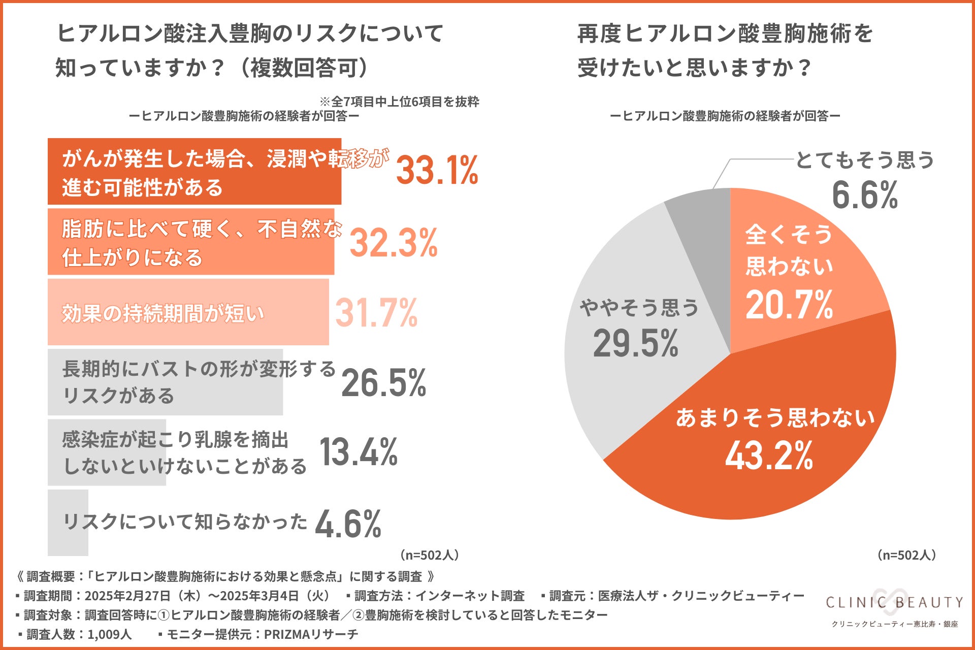 今回の調査で、ヒアルロン酸豊胸施術における効果と懸念点などが明らかになりました。