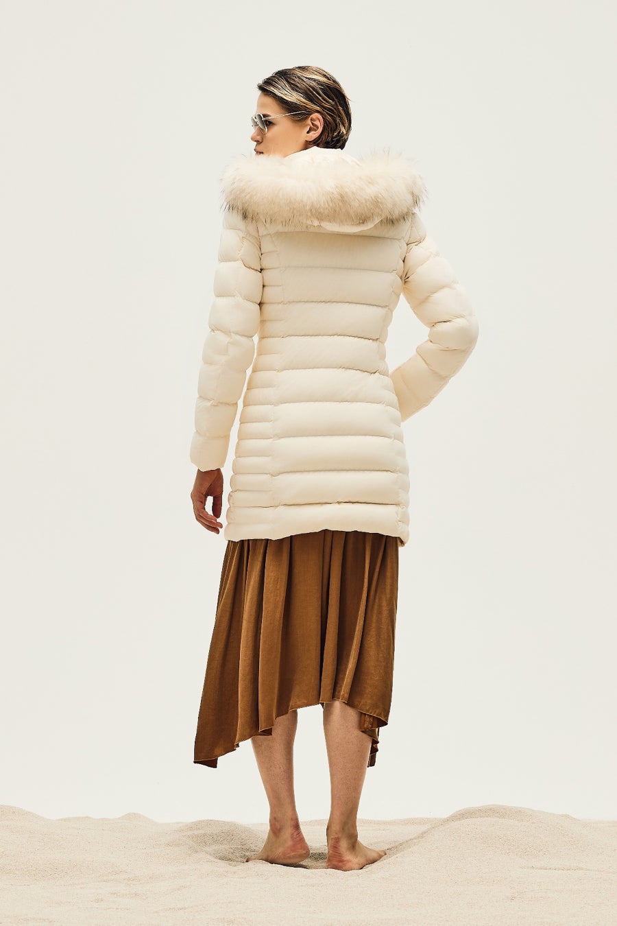 -10℃まで対応可能な暖かさはもちろん、上品にすっきりと着用できる着ぶくれしない一着です。