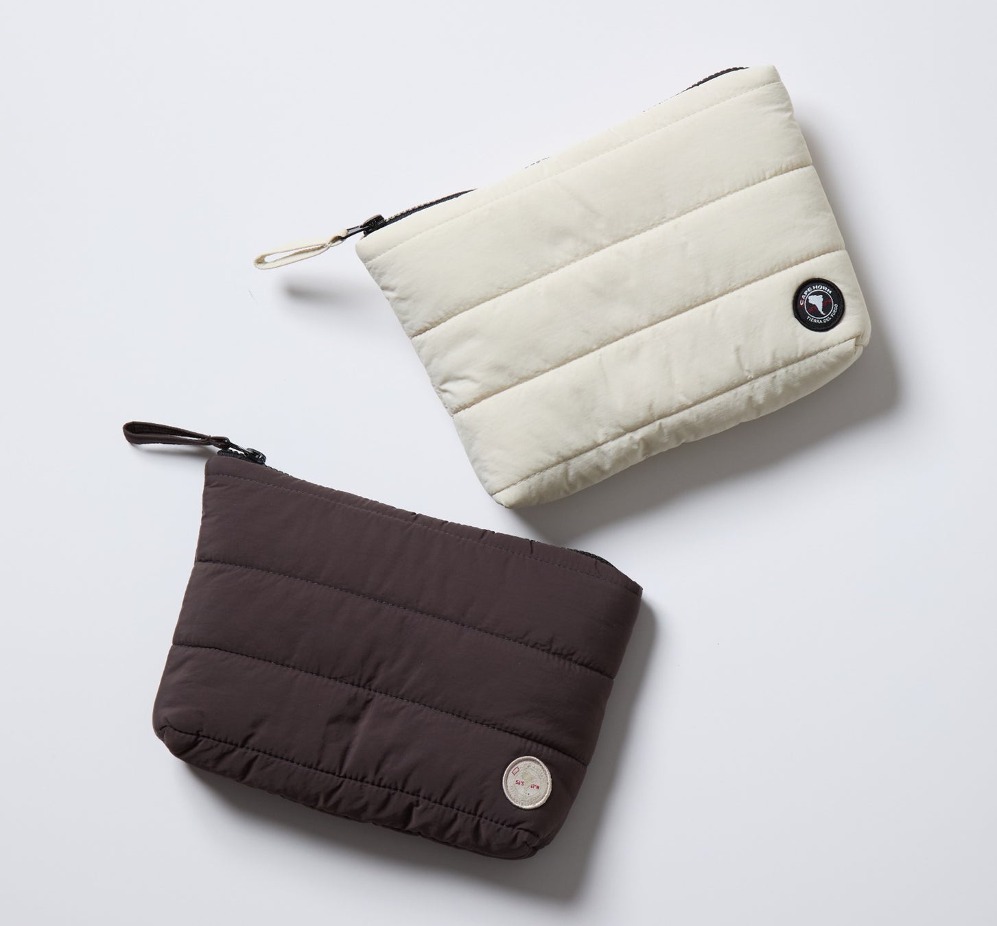 今季ケープホーンがオススメするカフェラテカラーの中綿ポーチ。