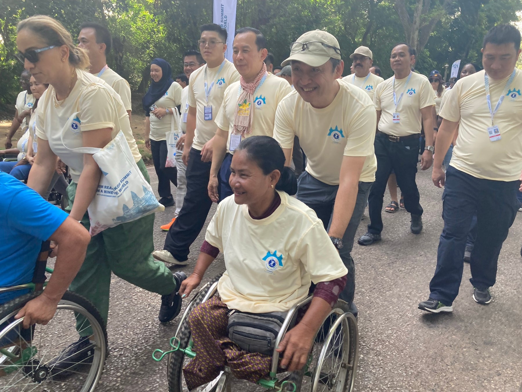 対人地雷禁止条約検討会議のスローガン「地雷のない世界」を訴えるためのマーチ。世界遺産であるアンコールワットを、リートイッ上級大臣兼カンボジア地雷対策犠牲者支援庁長官をはじめとするカンボジアの閣僚や各国代表団、地雷被害者や地元の子どもたちが約2時間かけて歩きました。日本政府からは市川とみ子軍縮会議日本政府代表部大使他、JICAからは安藤理事他が参加しました。