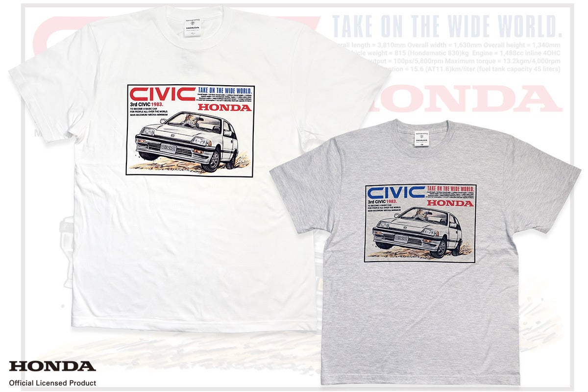 その中でも人気モデル 3rd CIVICをどこか懐かしくも可愛いプラモデル調にデザインにしたこの夏ぴったりなリラックスシルエットのT-SHIRTS。懐かしさ全開!CIVICファンも納得のリラックスTシャツで、夏の思い出を作ろう♪
