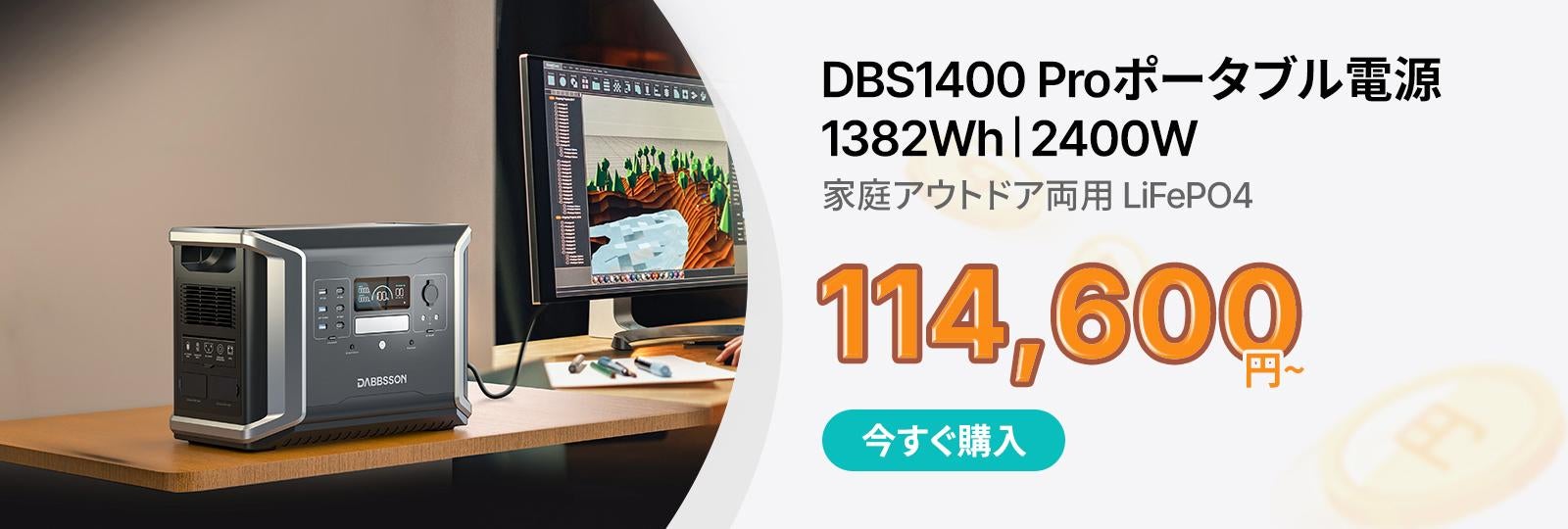 ・商品概要:業界最速の充電速度を誇るDBS1400Proポータブル電源、45分間で0-80%充電できます。家庭アウトドア両用半固体LiFePO4バッテリー