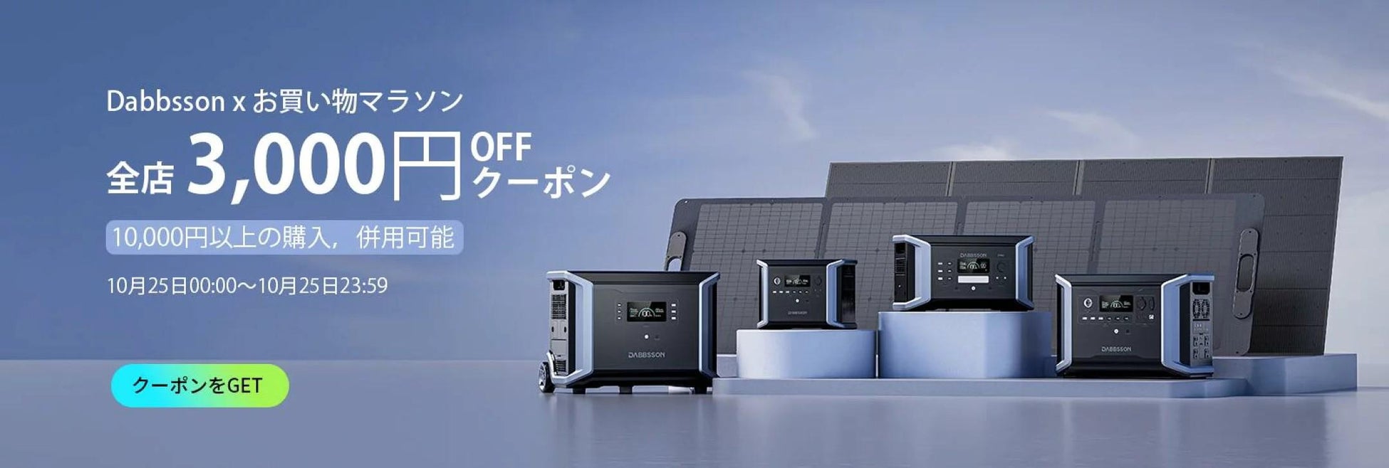 クリーンエネルギー技術で最先端の半固体ポータブル電源を開発するテクノロジー企業、Dabbsson 新エネルギー技術有限会社は、2024 年 10 月 24 日(木)20:00 から 10 月 27 日(日)09:59 まで、Dabbsson 楽天市場店で【お買い物マラソン】を開催します!