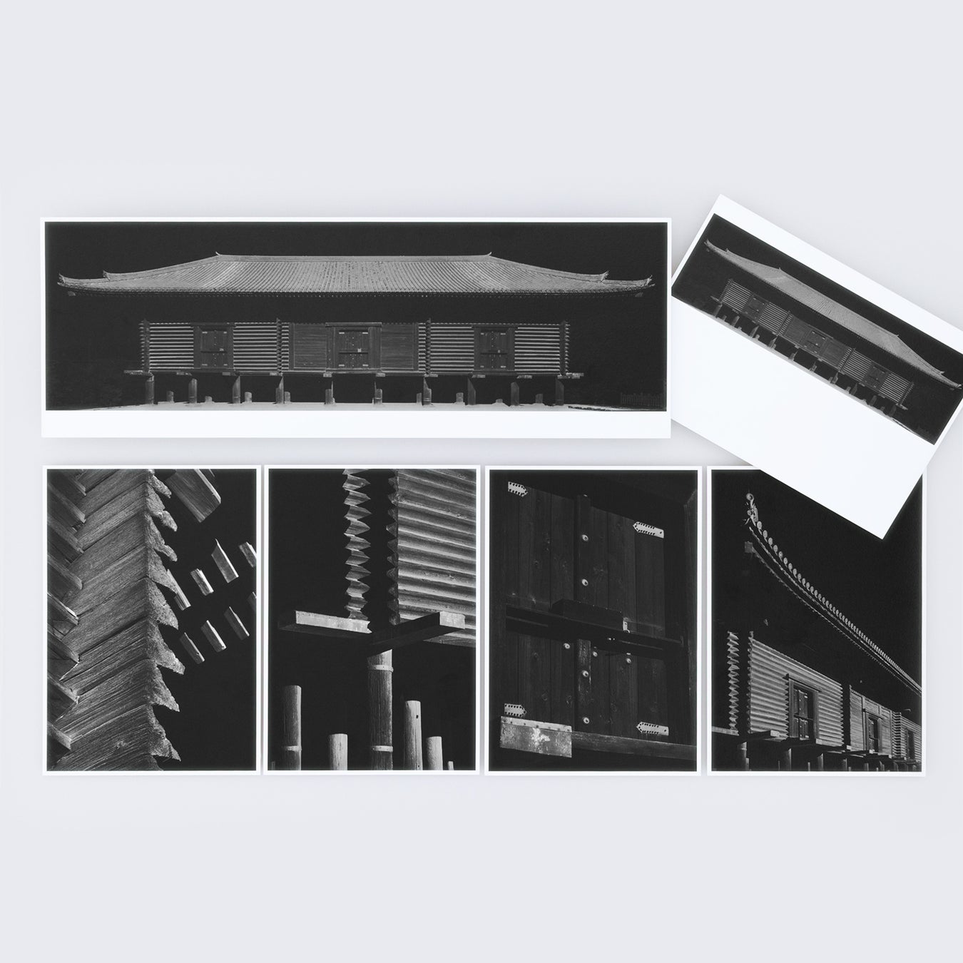 瀧本さんが撮り下ろした正倉院正倉の写真がポストカードになりました。通常のはがきサイズは全5枚でセット販売825円もあります。正倉全景はそのスケール感を感じられるワイドサイズも!