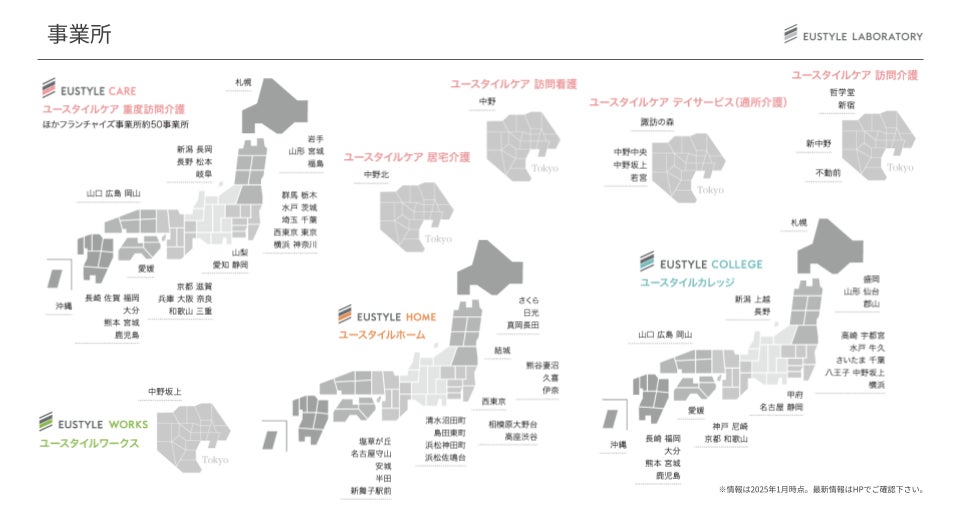 現在、「ユースタイルケア 」は全国の直営事業所と共に44のフランチャイズ事業所に拡大し、障害福祉の訪問介護事業者として全国最大規模となりました。