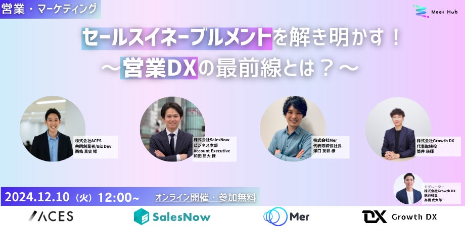 【オンライン開催・参加無料】現代に求められる営業活動を科学する4社が登壇!-株式会社Growth DX主催、2024年12月10日(火)12:00~