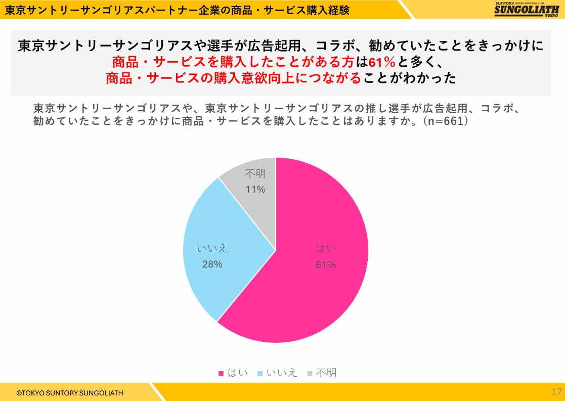 ~61%の方がサンゴリアスや推し選手が広告起用、コラボしている商品・サービスの購入経験あり~