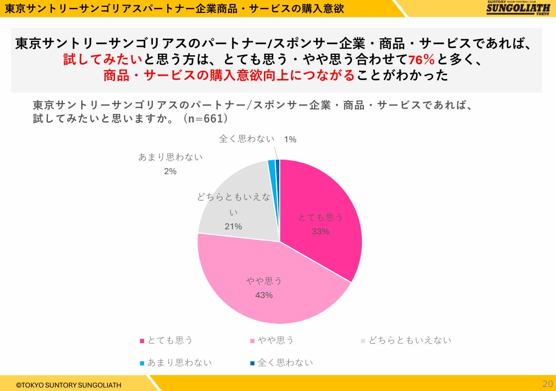 東京サントリーサンゴリアスのパートナー企業に関する意識調査アンケート結果一部を公開すると、以下のような結果となりました。