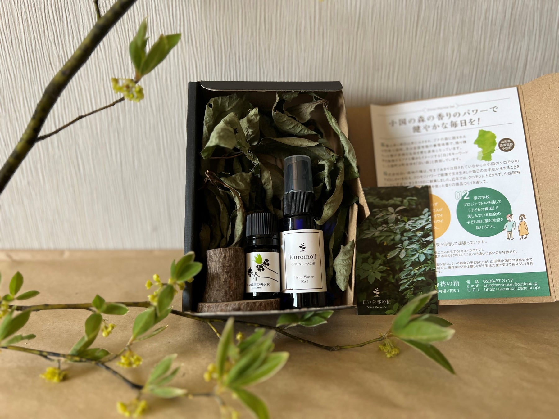 白い森林の精は、そんな小国のクロモジの魅力が詰まった香りの商品をお届けします。