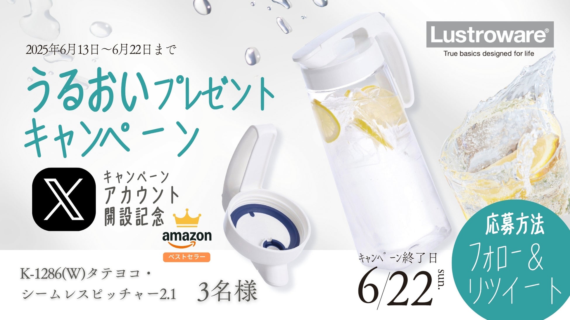「ふたとパッキンが一体化!シームレスピッチャー2.1L」 Xキャンペーン応募者から3名、Instagramキャンペーン応募者から3名 |