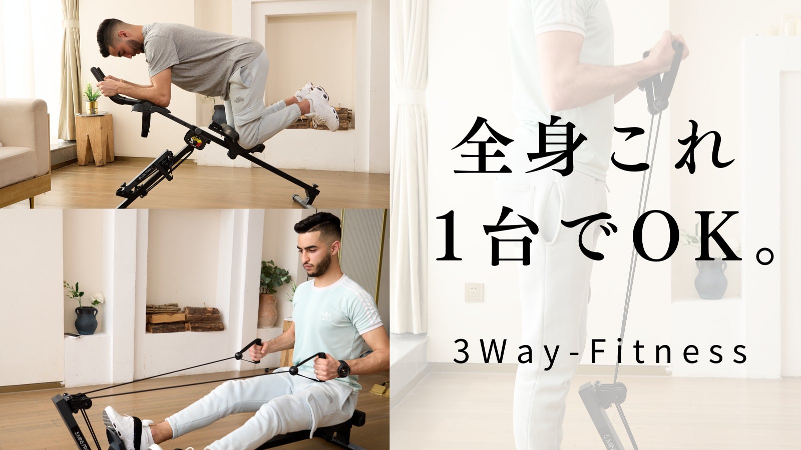 『3Way-Fitness』は、ジムに通わずに全身を効率的に鍛えられる画期的なトレーニングマシンです。