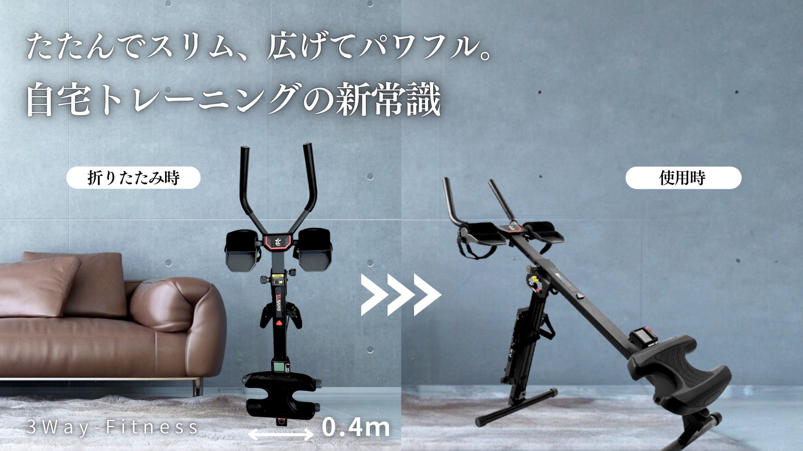 「運動したいけど、部屋が狭くて無理…」そんなあなたにこそ、『3Way-Fitness』の省スペース&折りたたみ機能がぴったり!