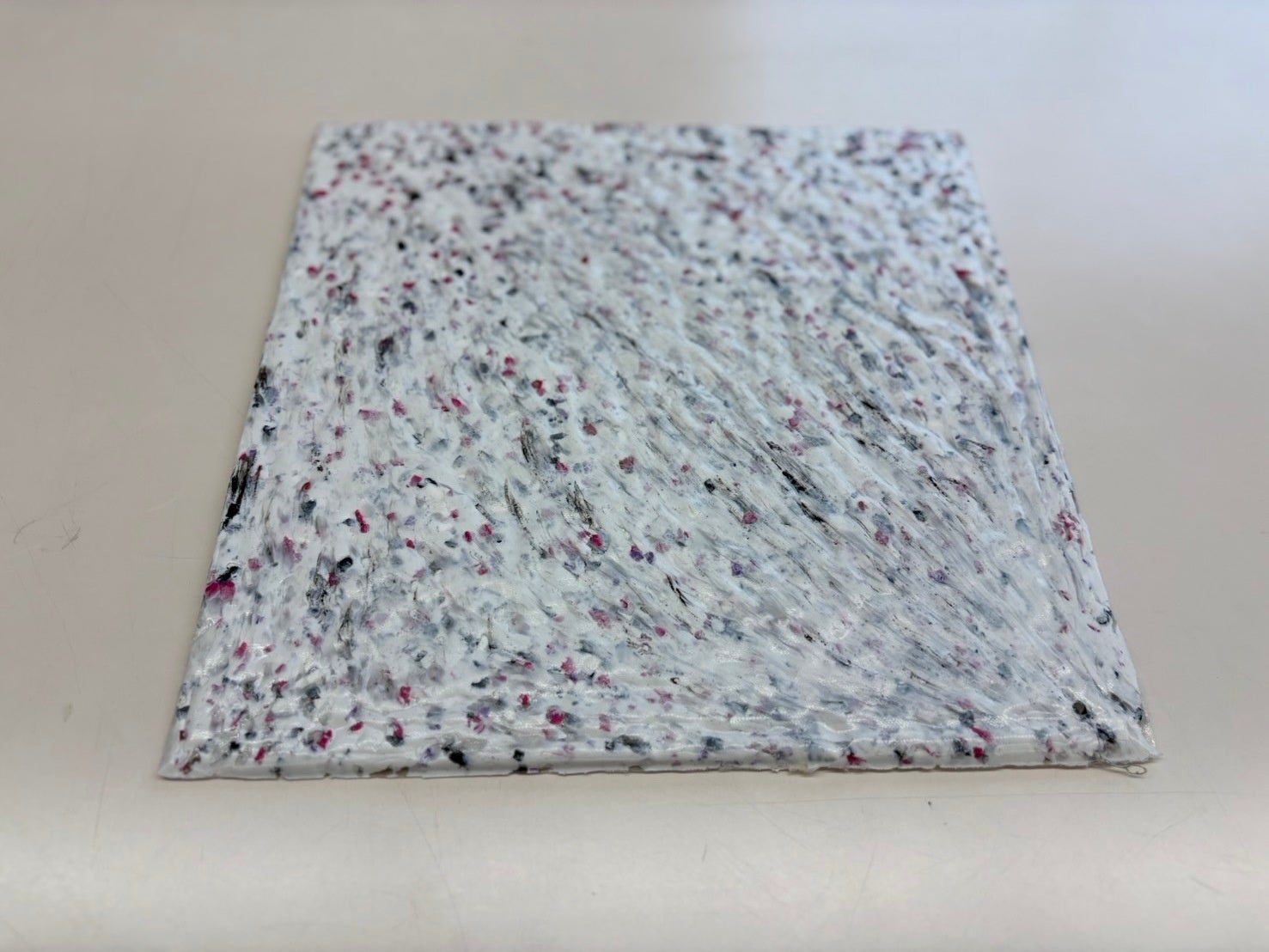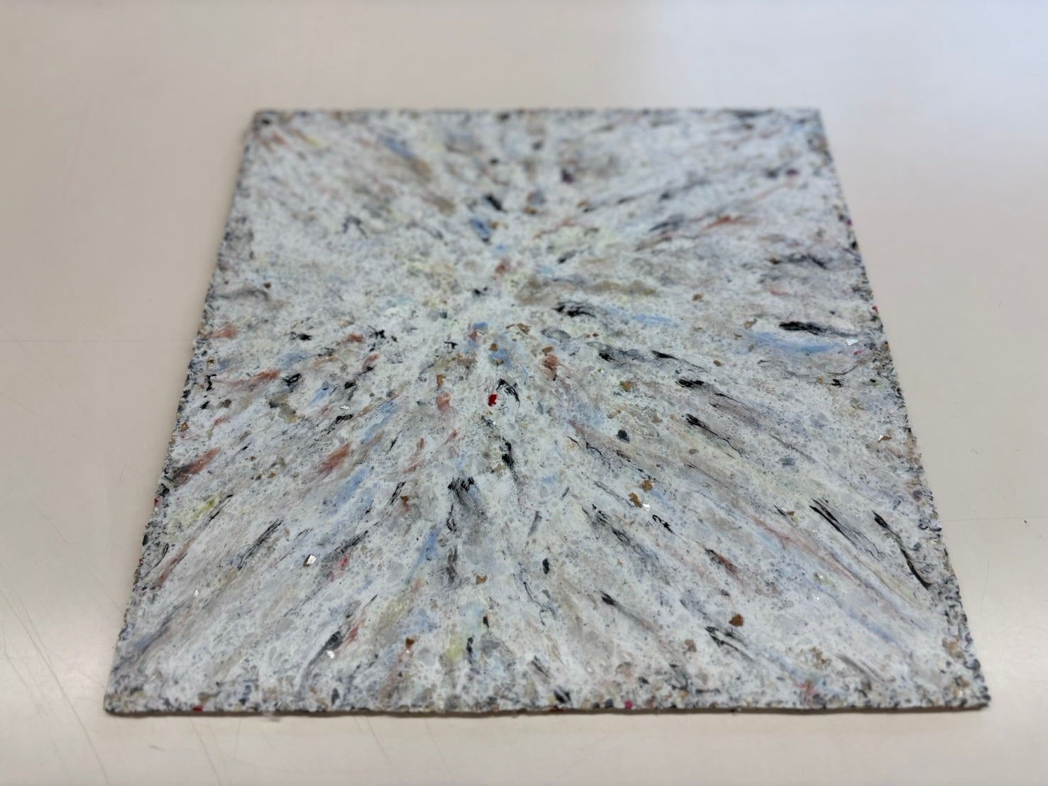以下は今回プレス成形に成功した、あらゆる廃プラ由来の5mm薄型板材の実物写真です。