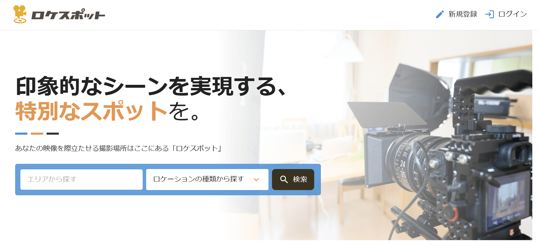 ロケスポットは、撮影可能な物件と撮影場所を探す映像制作会社をつなぐポータルサイトです。