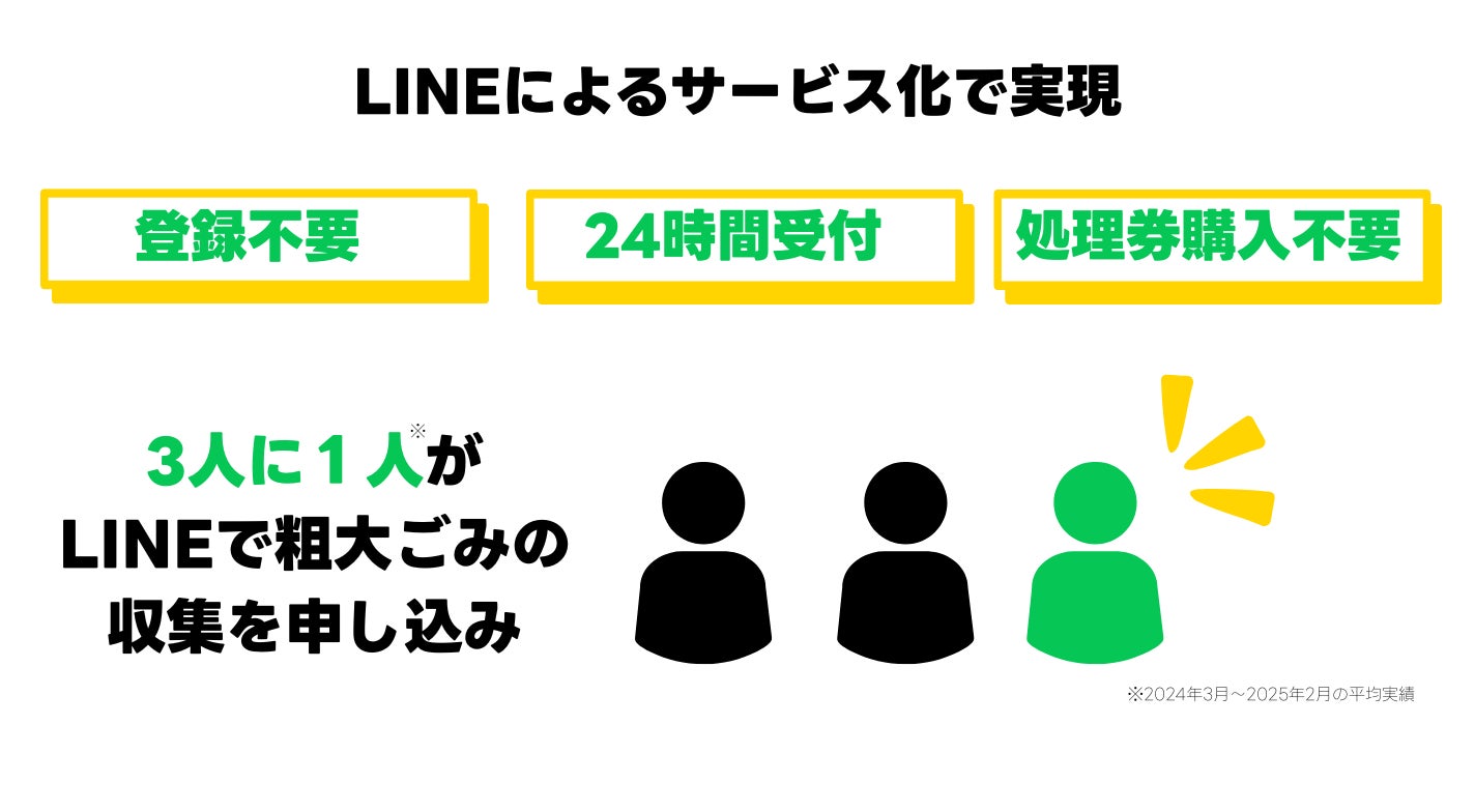 本サービスは、福岡市とLINEヤフー株式会社、当社が2018年に締結した、「地域共働事業に関する包括連携協定」に基づき、収集申込が多い引越しシーズンや、年末年始等に電話がつながらない状態が発生していたことの対応改善策、市民サービス向上を目的として、2019年より本格稼働しております。