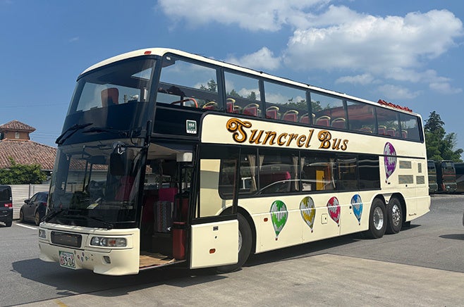 バスに乗ってレーシングコースを解説付きでゆったり走るツアー! 普段は入れない迫力のコースを家族と一緒に間近で感じられます。