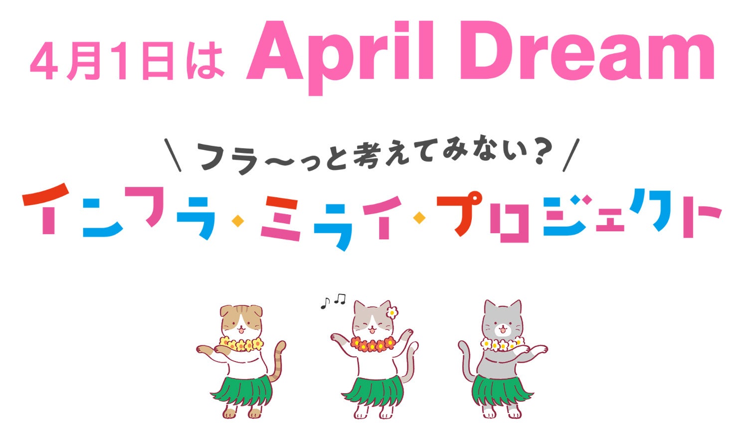 当社は、4月1日を夢を発信する日にしようとするApril Dreamに賛同しています。このプレスリリースは「インフラ・ミライ・プロジェクト」の夢です。